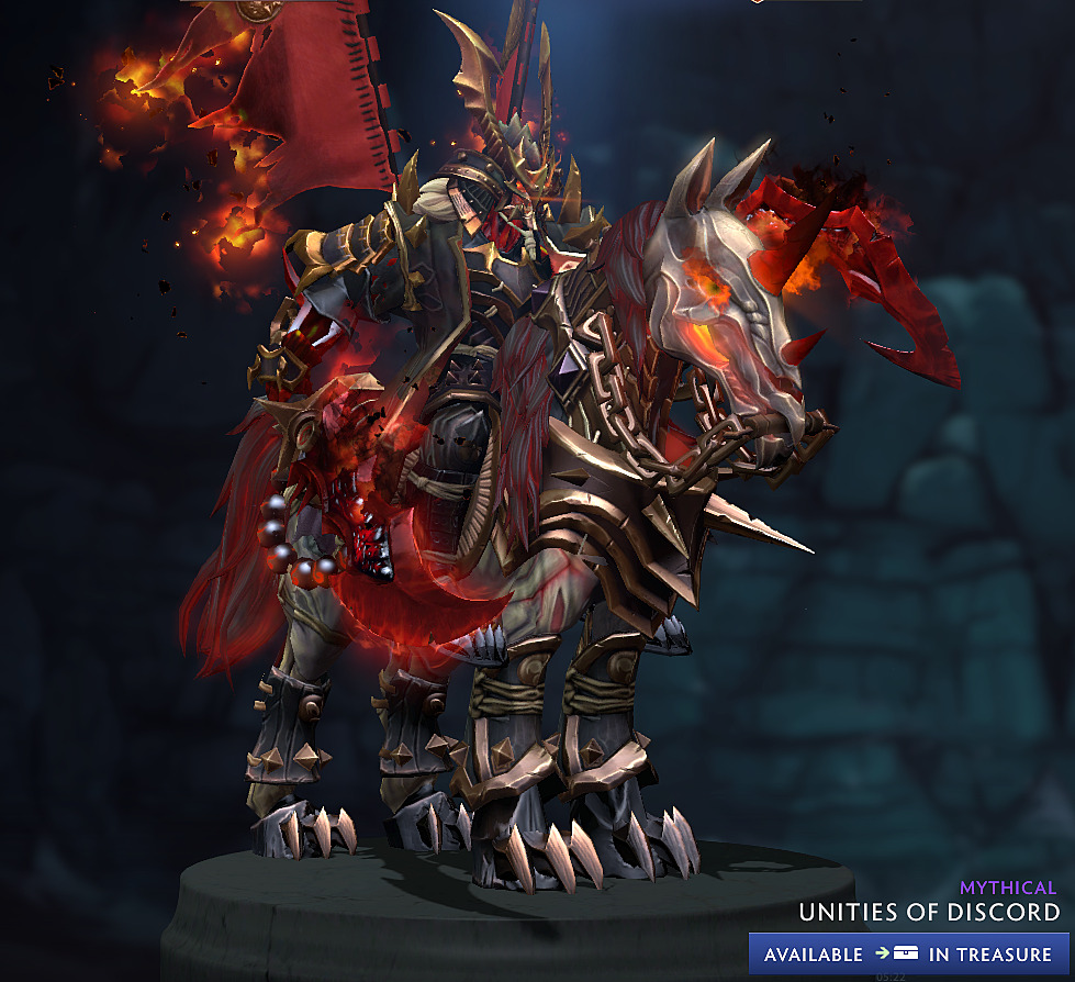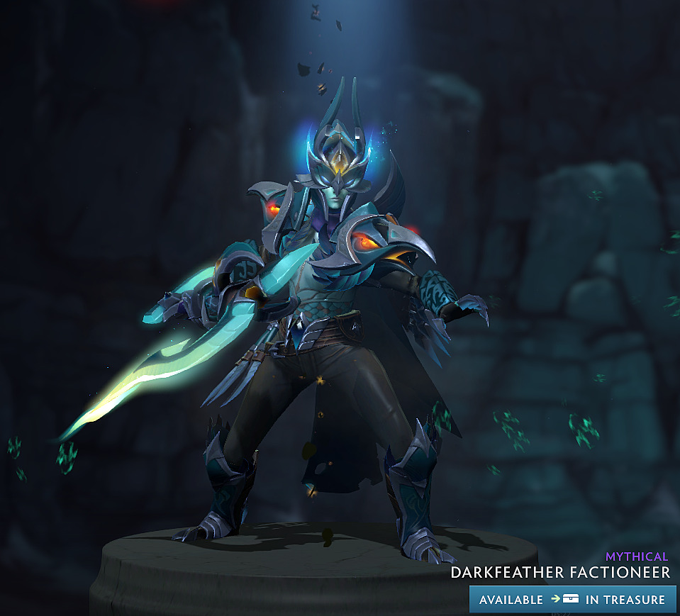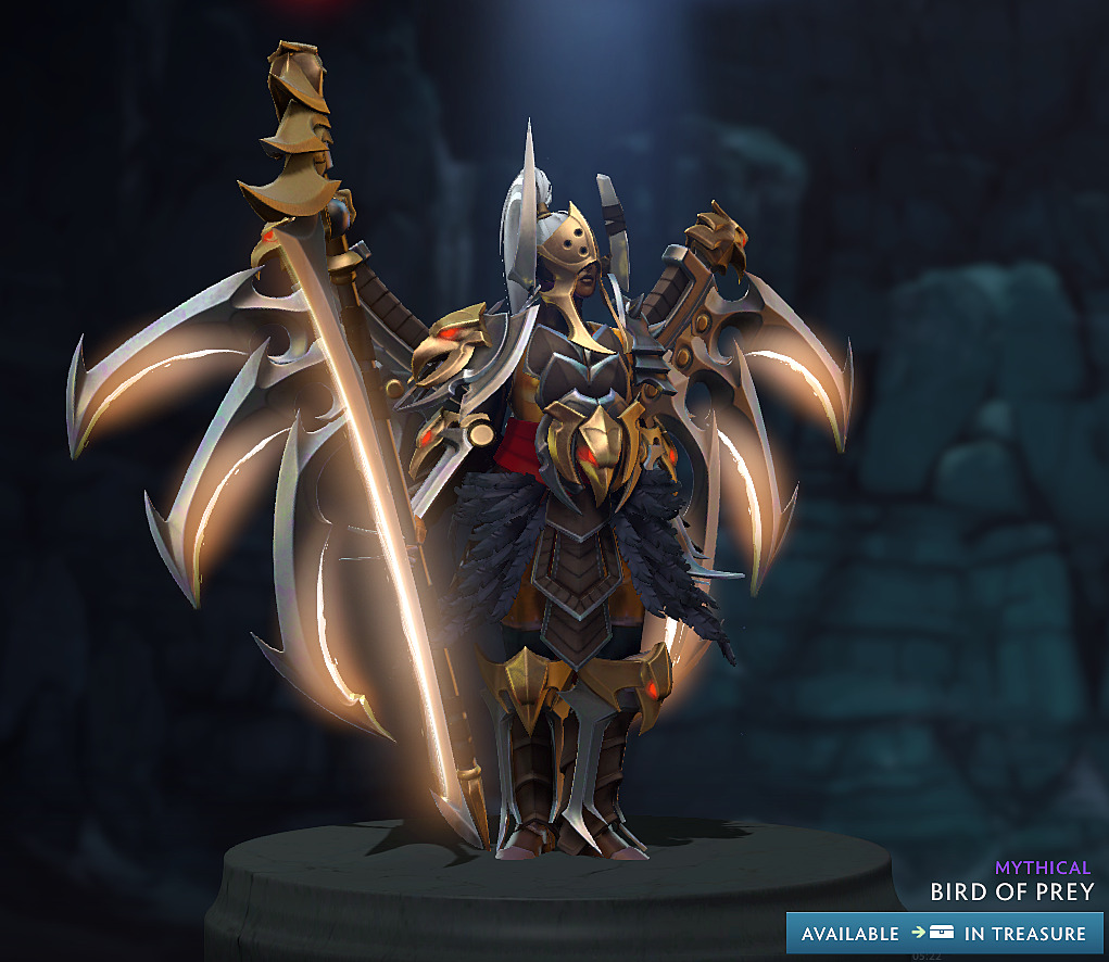 Legion Commander’s avian-inspired armor features intricate feather detailing and a commanding presence that enhances her duel-winning animations. The set maintains her signature color palette while introducing new particle effects during Press the Attack and overwhelming odds casts.