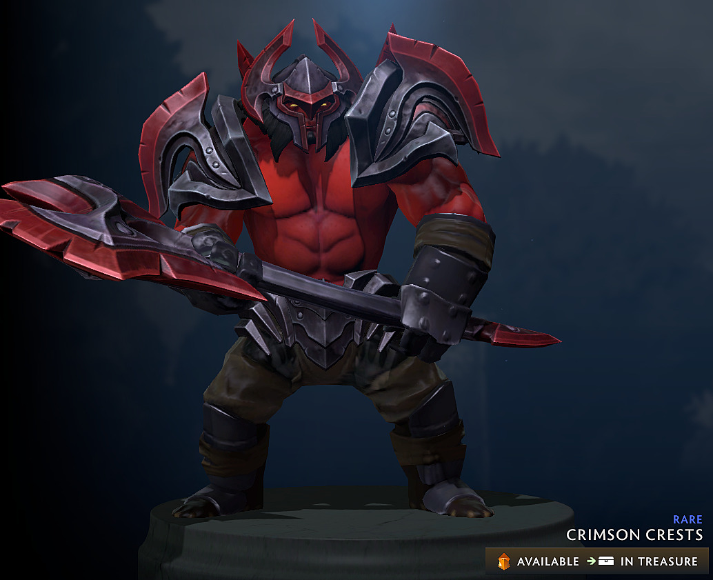 Crimson Crests elevates Axe’s battlefield presence with blood-red plate armor featuring animated crimson energy that intensifies during combat. The axe blade incorporates a unique blood-drip particle effect that activates on hero kills.