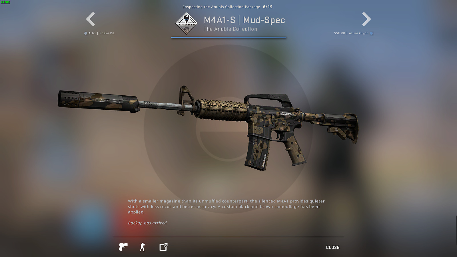 M4A1-S Mud-Spec offers a tactical desert camouflage pattern optimized for arid environments. The muted earth tones provide both aesthetic appeal and practical visual discretion in appropriate map settings.
