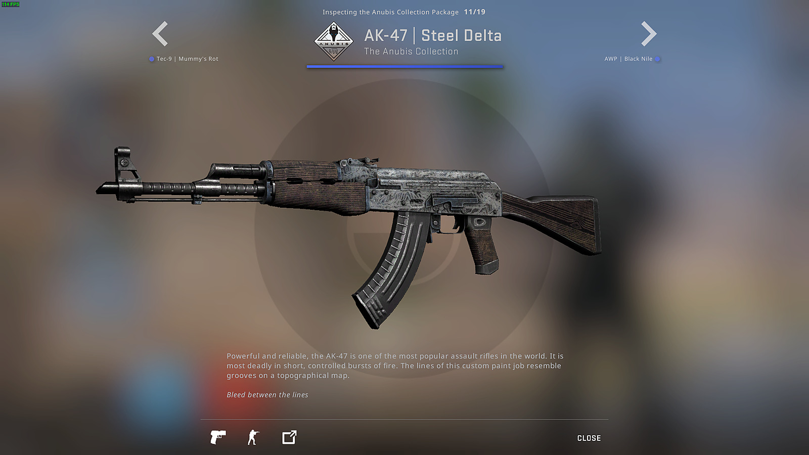 AK-47 Steel Delta combines modern tactical elements with Egyptian iconography for a hybrid aesthetic. The skin’s metallic base provides durability while the thematic accents maintain collection cohesion.