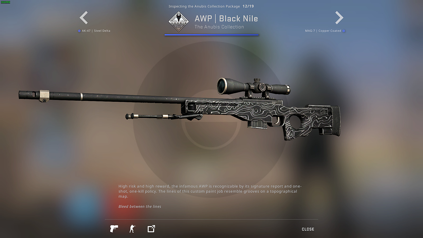 AWP Black Nile stands as one of the collection’s premium offerings with its deep black finish accented by gold Nile river motifs. This skin’s sophisticated color scheme and premium materials suggest high collector value and market demand potential.