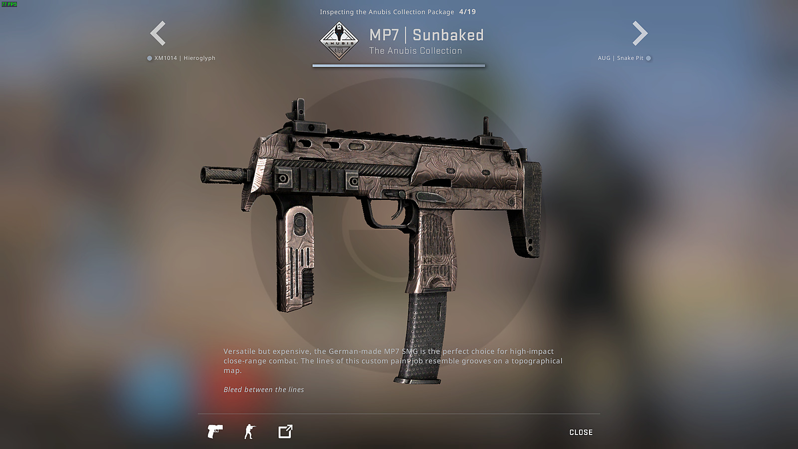 MP7 Sunbaked captures the essence of desert exposure with its cracked earth texture and sun-bleached coloration. The skin’s realism comes from the subtle gradient from lighter to darker tones, mimicking actual sun-faded materials.