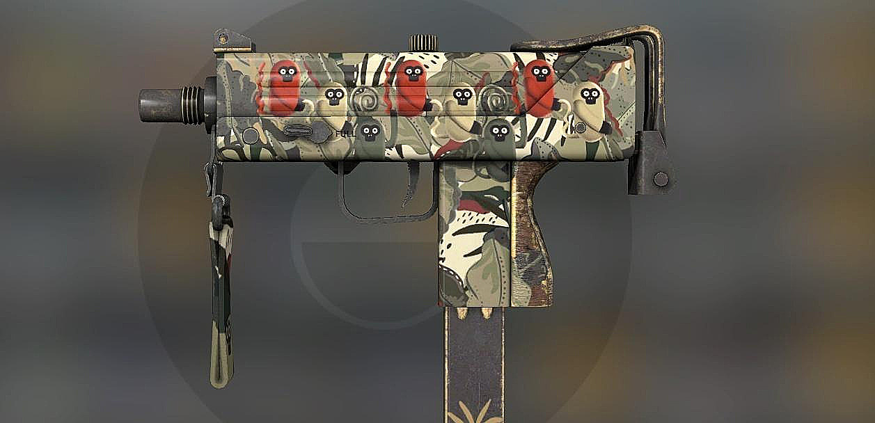 The Mac-10 Monkeyflage employs a tropical primate pattern that adds humor to the economical SMG category. This skin represents excellent value for players seeking personality without significant investment.