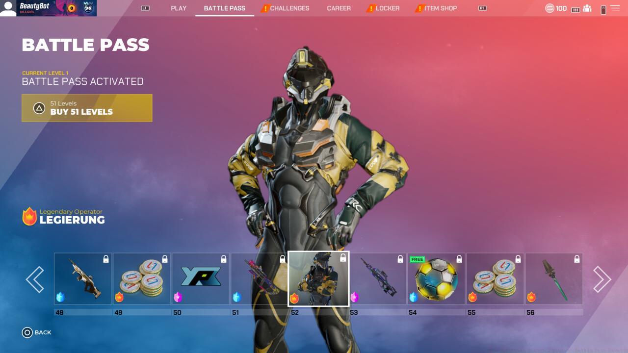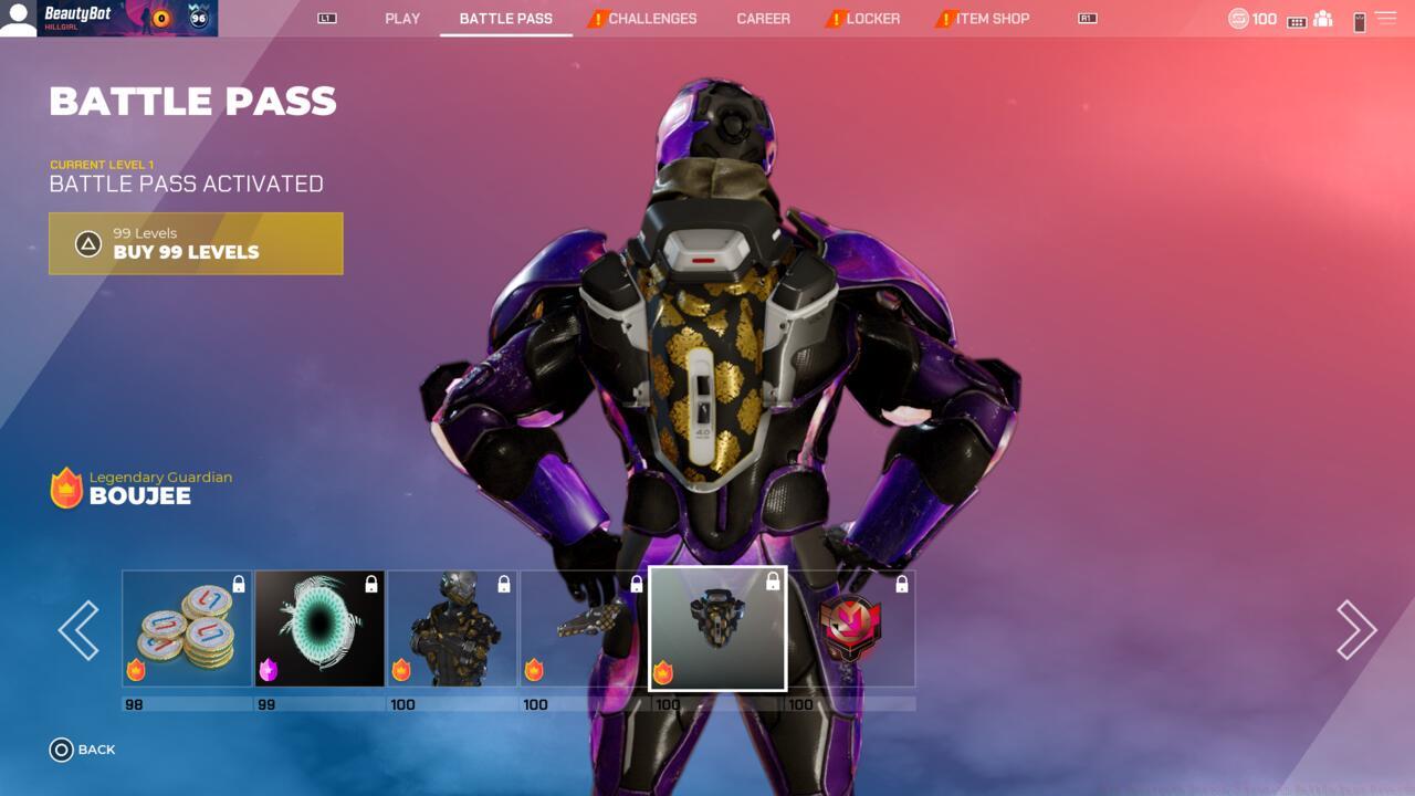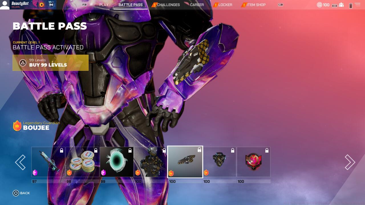 Players achieving the maximum level 100 milestone will accumulate substantial rewards: five separate 5% XP boosts (combining for 25% total acceleration), 1200 Splitcoins currency, and ten random loot containers. Additionally, battle pass completion unlocks the exclusive Legendary-tier Guardian character alongside three distinctive Guardian skin variations.