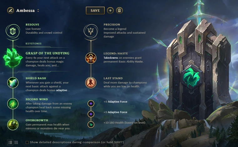 Ambessa performs exceptionally well with three primary rune configurations: Electrocute for burst damage, Grasp of the Undying for sustained survivability, and Conqueror for hybrid effectiveness. Electrocute delivers additional burst potential, Grasp enhances durability and cooldown management, while Conqueror offers balanced offensive and defensive attributes.