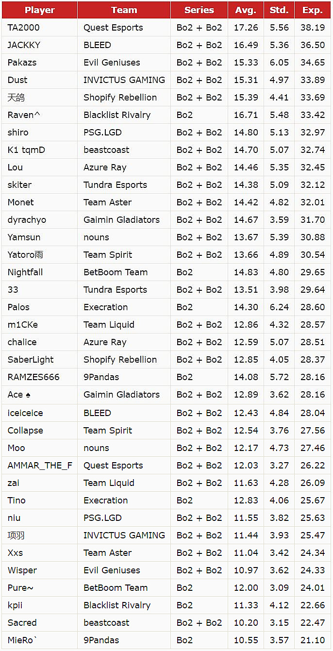 Strategic team exclusion proves vital for Day 1 optimization. Four squads face limited single bo1 matches: BetBoom, Execration, Blacklist International, and 9Pandas. Fantasy participants should deliberately bypass players from these teams due to restricted scoring opportunities. Performance projections derive from comprehensive analysis of 50 recent tier 1 and 2 professional matches. Below find optimized selections for each positional role. (Average indicates historical performance, Expected represents projected value):