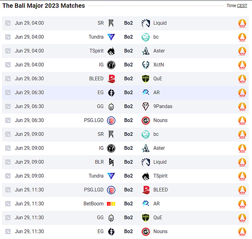 Critical scheduling information for Bali Major’s opening day (CEST timezone – utilize our tournament page for localized time conversion):