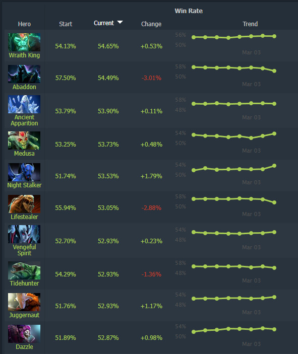 • Prioritize Wraith King and Abaddon for reliable winrate performance