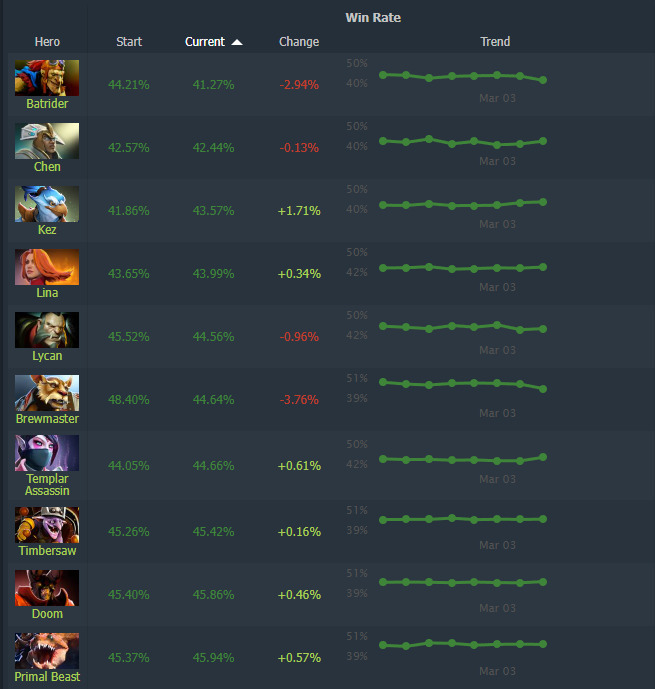 • Batrider struggles severely with 41.3% winrate following ability changes