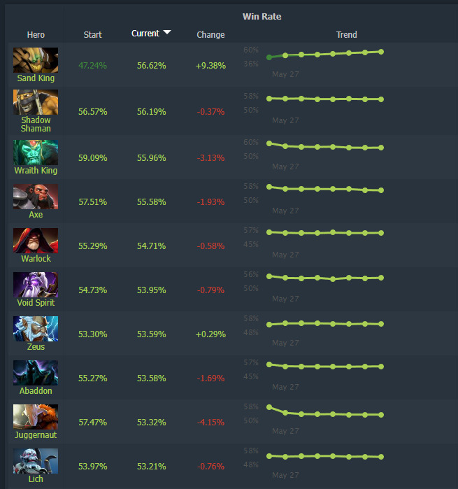 - Shadow Shaman maintains 56.6% winrate despite recent nerfs to his core abilities