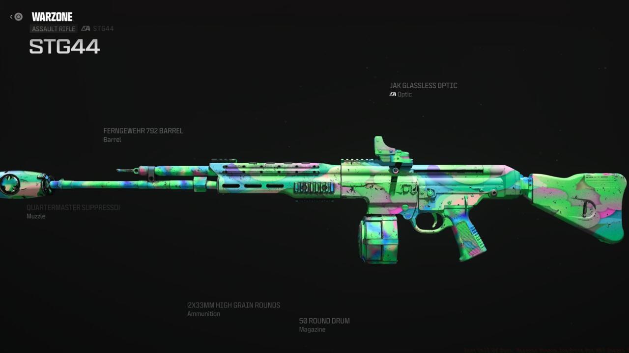 The STG44 assault rifle emerges as Season 5’s premier long-range option, delivering exceptional accuracy across Warzone’s diverse map environments. While exhibiting moderate vertical recoil patterns, the optimized attachment configuration transforms this historic weapon into a laser-precise instrument for medium-to-long distance engagements.