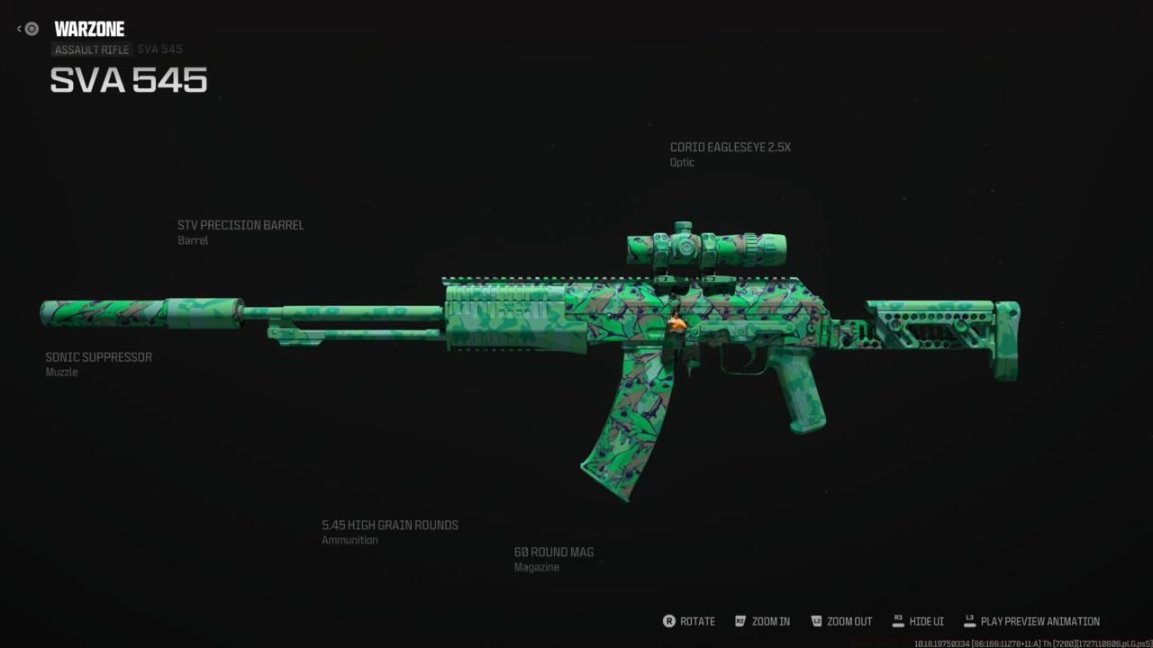 The SVA 545 assault rifle delivers exceptional accuracy with its unique burst-fire capability that can be optimized for full-auto performance. This weapon excels in mid-range engagements where controlled fire delivers decisive results.