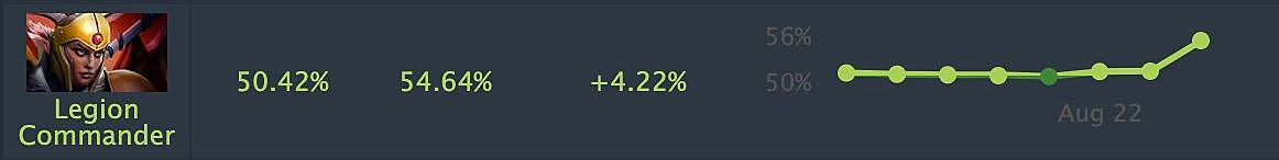 Legion Commander. This military leader received several substantial enhancements. Duel’s base engagement radius expanded, with additional growth through level progression (from 150 to 200/250/300), and at level 10 players can select a talent providing +8 damage per successful duel. Blade Mail’s active duration increased from 4.5 to 5.5 seconds, reinforcing this essential item for offlane Legion Commander builds. These modifications contribute to one of the highest offlane success rates currently observed.