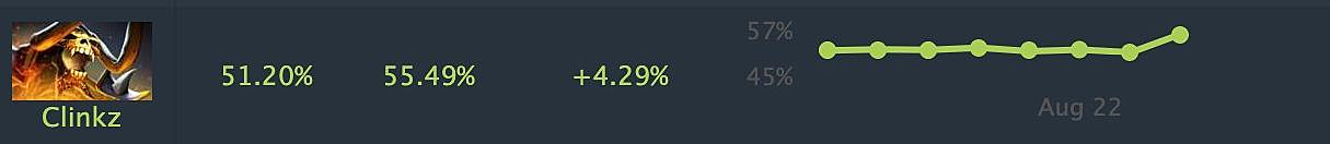 Clinkz. This skeletal archer experienced another significant power surge from the latest adjustments. The arrow quantity increase on Burning Barrage (elevated from 3/4/5/6 to a consistent 6) dramatically increases lane pressure and accelerates jungle stack clearing. At maximum ability level, his projectile firing interval decreases from 2.4 to 2 seconds. While professional scene relevance remains uncertain, ranked matchmaking demonstrates his potential as a formidable threat in experienced hands, evidenced by the 4.29% win rate improvement.
