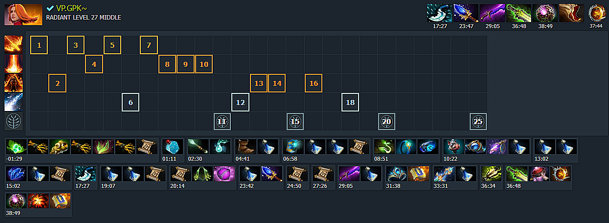 The Rearm modification increased Black King Bar’s popularity significantly, as maintaining blink mobility and item spam capabilities becomes paramount. Kaya and Aether Lens serve as effective intermediate items during progression phases.