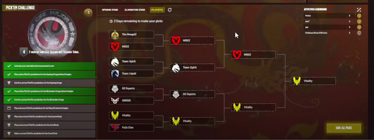 No reproduction without permission:Game Guides » Best Playoffs Pick’Ems for Shanghai Major 2024. Predictions and pickems from pro players and talent to get Diamond Coin Expert strategies and pro predictions to maximize your Shanghai Major 2024 Pick'Ems success and earn Diamond Coin