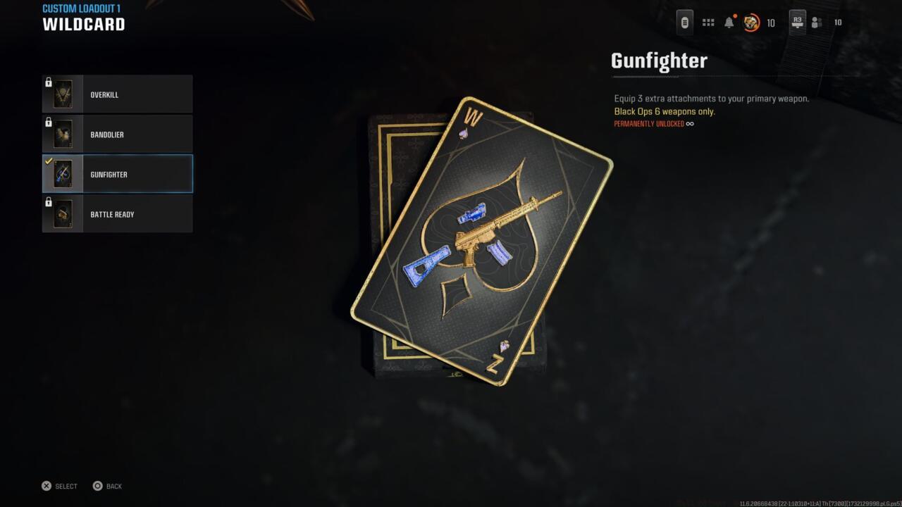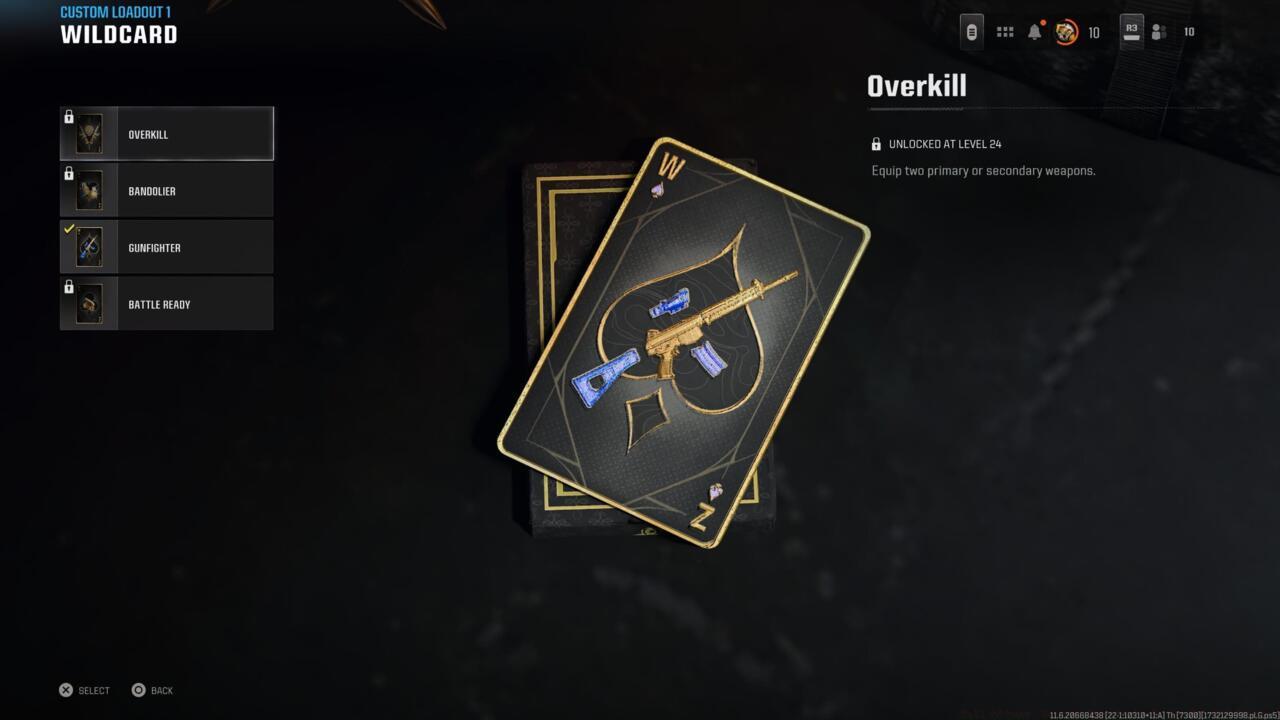 - Wildcards enable specialized loadouts with Overkill for dual primaries or Gunfighter for attachments