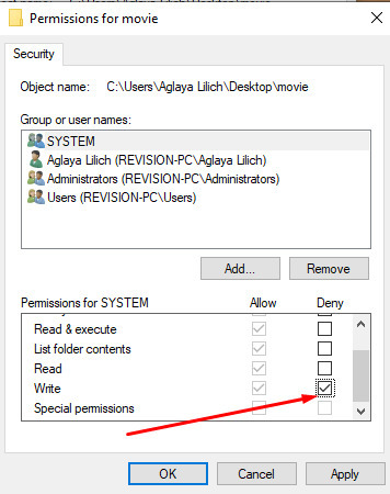 Right-click the movie folder and access Properties from the context menu. Proceed to the Security tab where you’ll find user permission settings. Modify the access controls to explicitly deny file creation privileges for all user accounts and applications interacting with this location.