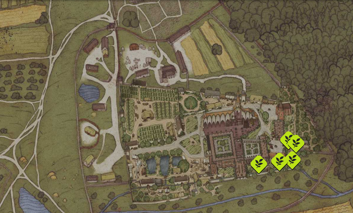 How to find herbs for Essential oil and Plague hood in Sedletz Monastery in KCD2