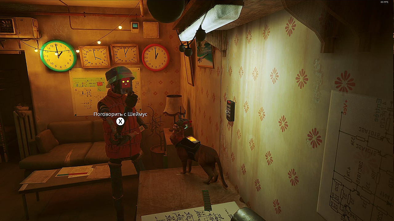 Doc’s clandestine research facility is cleverly concealed within Seamus’ residence, hidden behind a disguised wall section. To reach his apartment, Seamus will dismantle one of the wooden panels situated to the left of the main doorway, creating an entry point perfectly sized for your feline protagonist. Once inside, present Seamus with Doc’s personal journal that you previously acquired, triggering the next phase of your investigation.