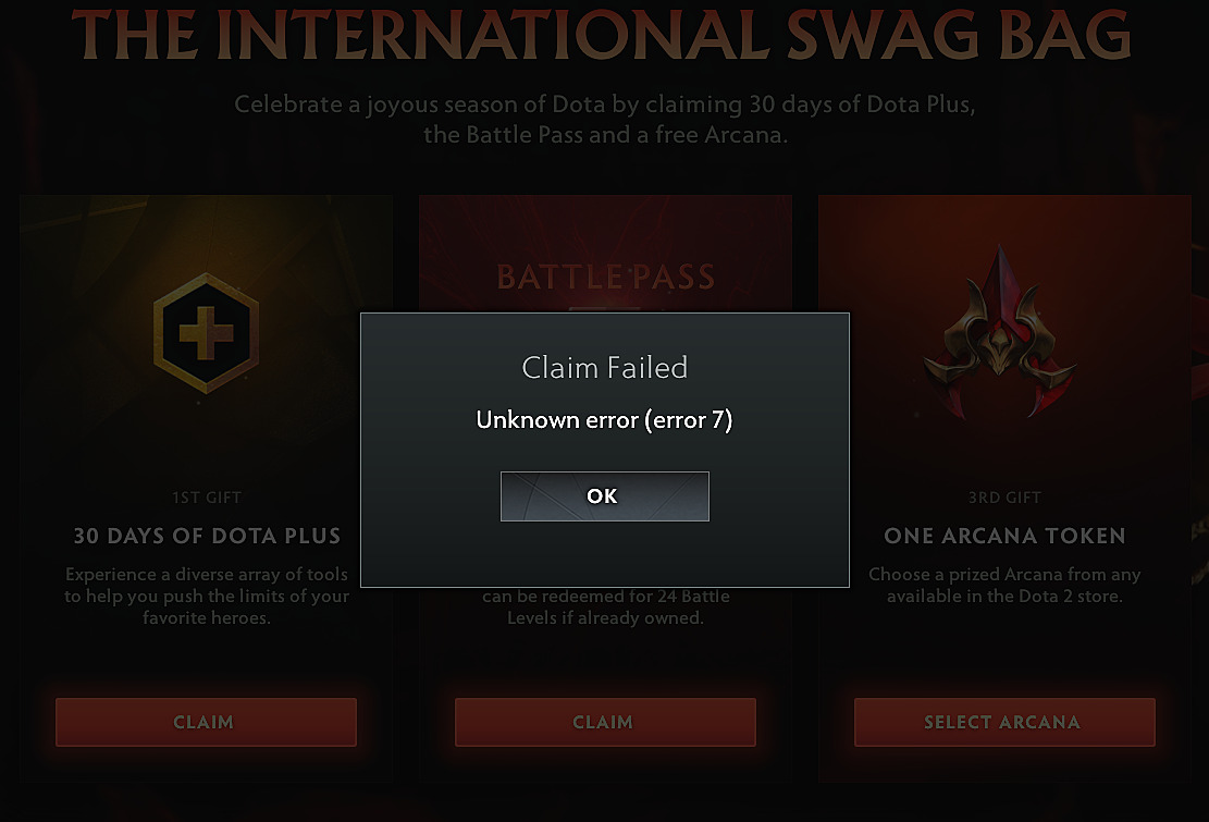 The predominant error message displays as “Unknown error (error 7)” which directly results from extreme server congestion during peak claim periods. This specific error cannot be permanently resolved through conventional troubleshooting methods since it stems from infrastructure limitations. Your most effective approaches involve completely restarting the Dota 2 client and persistently attempting the claim process, or simply waiting until player traffic naturally decreases during less busy timeframes.
