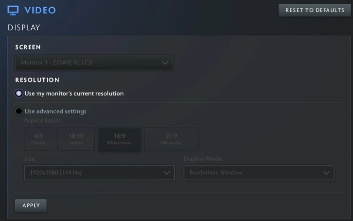 - Launch Dota 2 and navigate to the video configuration settings menu