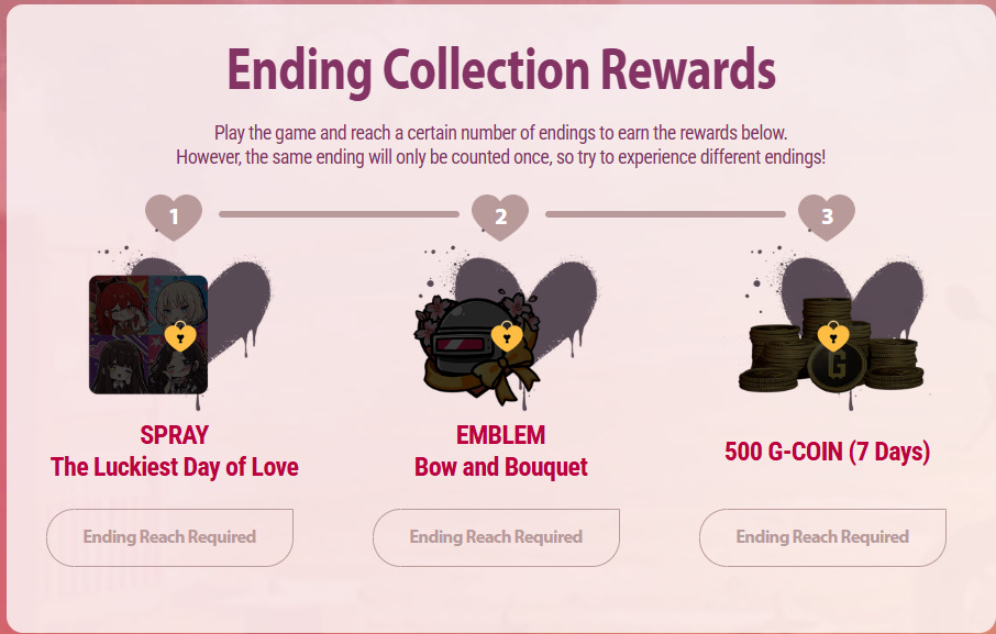 - Complete three specific endings to claim all rewards including 500 G-Coin