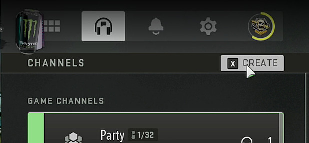 Initiate the process by selecting the headset icon prominently displayed in the upper-right corner. This action reveals your available channel roster, providing 32 configurable slots for squad organization and management across multiple gaming sessions.