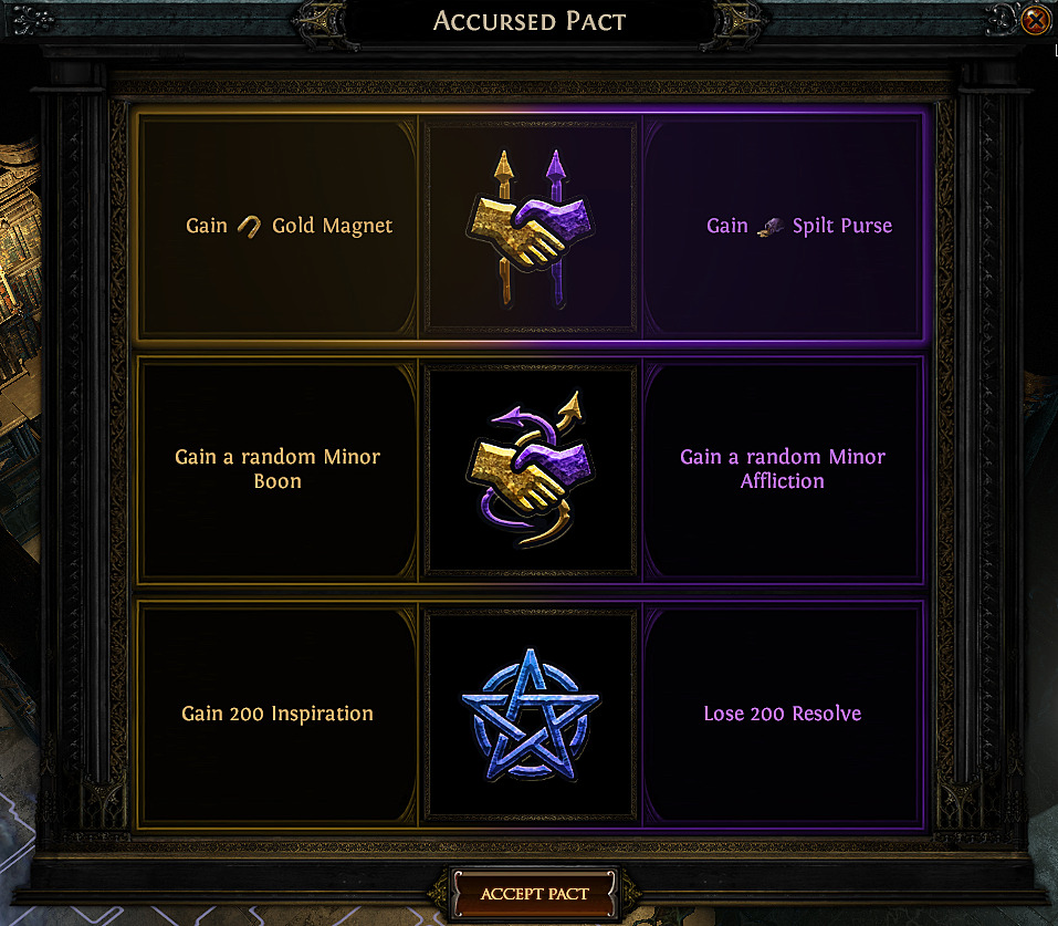 - Accursed Pacts offer risk-reward choices that appear after Act 7 completion