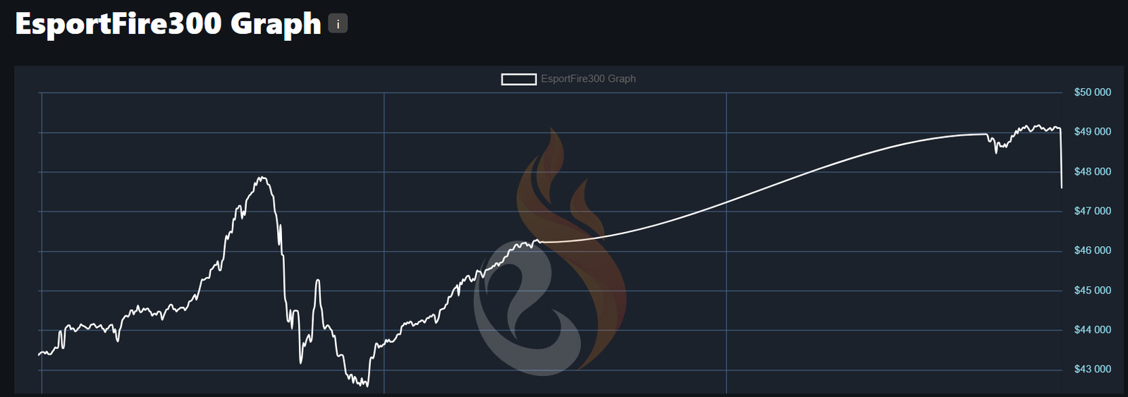 EsportsFire’s specialized index tracking premium skin valuations demonstrated more pronounced downward movement. However, this correction followed an unprecedented price peak, with current levels stabilizing near previous historical highs.