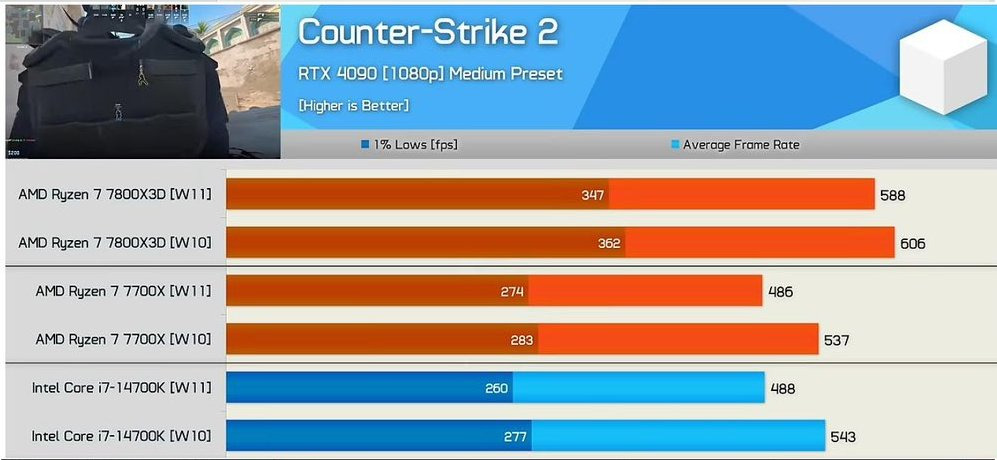 CS2 featured prominently in these performance comparisons, with the data indicating marginally better results on Windows 10 platforms. While the testing utilized varying processor models, the graphics hardware remained consistent throughout all evaluations: NVIDIA’s flagship RTX 4090 GPU running at Medium quality settings and 1080p resolution. The performance differential typically ranged between 3-8% depending on specific in-game scenarios and map locations.