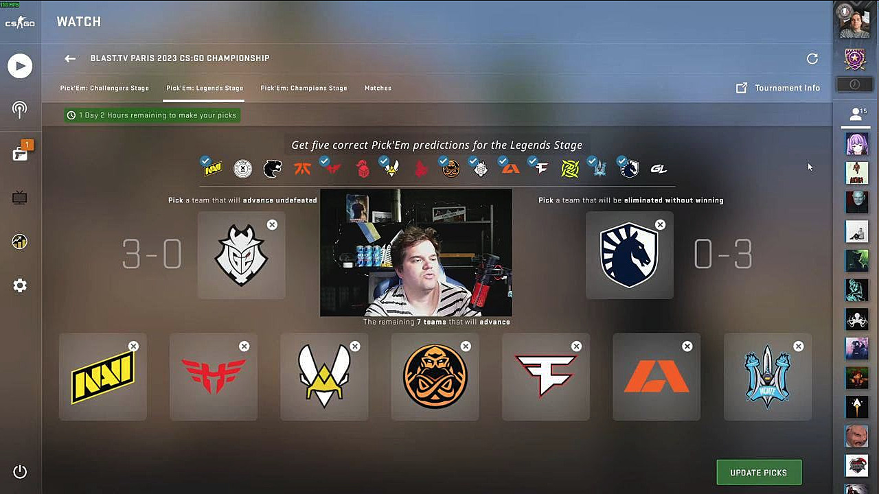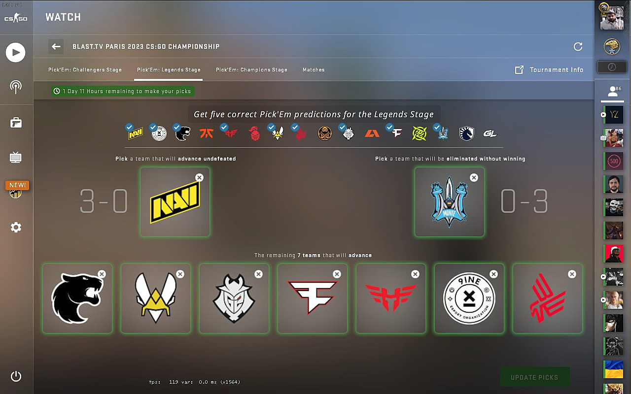 The BLAST Paris Major 2023 transitions into its crucial Legends Stage, where strategic predictions become essential for maximizing your rewards. As a Viewer Pass holder, you gain access to the Pick’Em system that, when executed skillfully, transforms your Event Coin into the coveted Diamond tier, unlocking valuable Souvenir Packages containing exclusive in-game items.