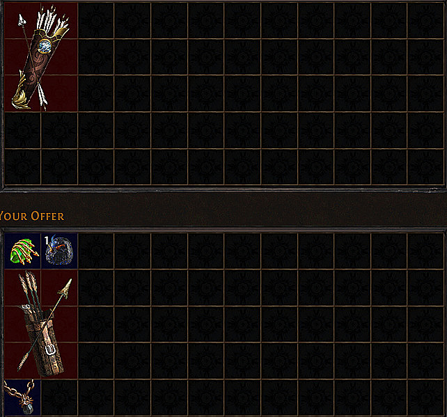 Multiple approaches exist for completing the unique item vendor recipe, with the Hyrri’s Bite method standing out as the most cost-effective and reliable option for league starters. This method requires four specific components: a white base Sharktooth Arrow Quiver (purchasable from vendors in Acts 1-4), any rare Onyx Amulet, a Rain of Arrows gem with any quality percentage, and a single Orb of Chance.
