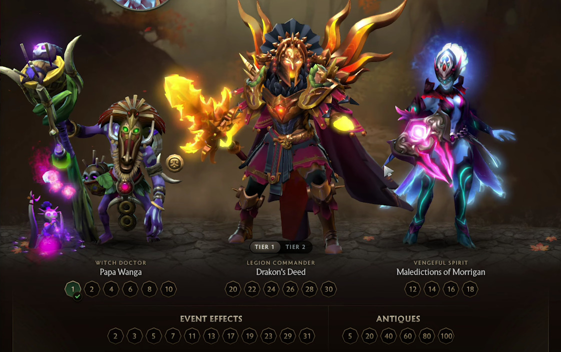 The event’s primary guaranteed cosmetic offerings comprise three complete hero ensembles for Witch Doctor, Vengeful Spirit, and Legion Commander. These sets unlock progressively through level milestones, creating natural achievement checkpoints throughout your journey.