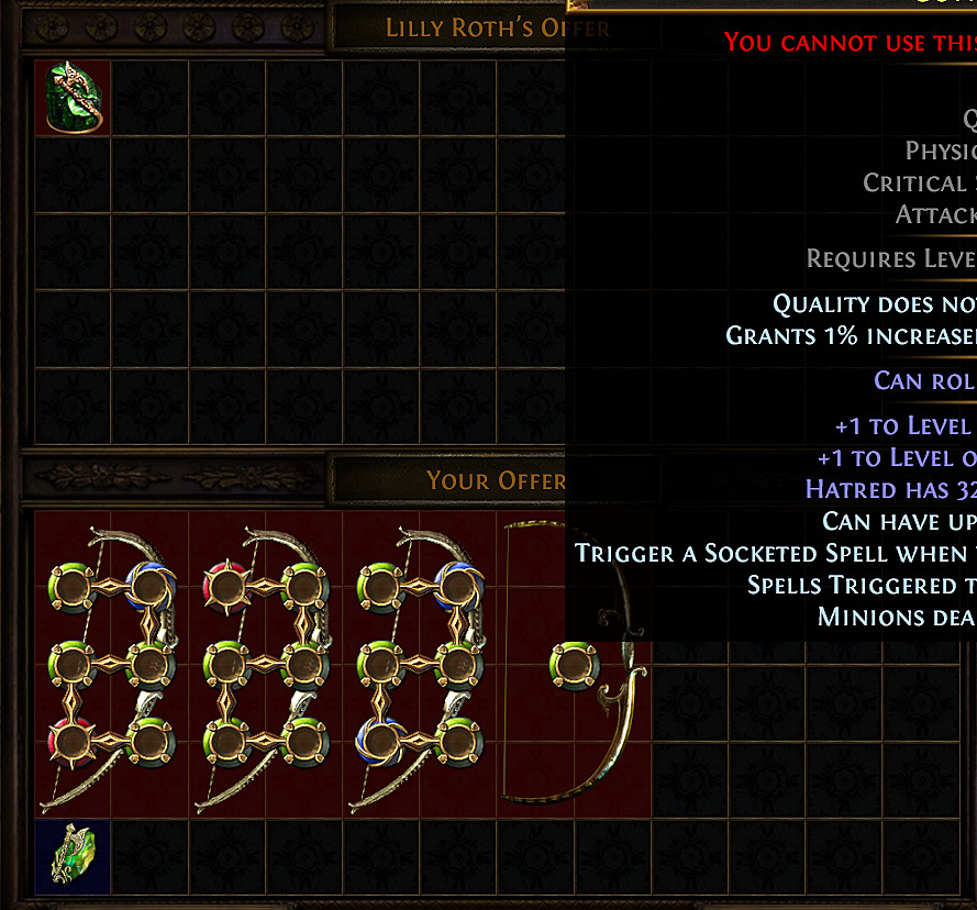 - Requires level 1 20% quality Animate Weapon gem and four bows of same base type