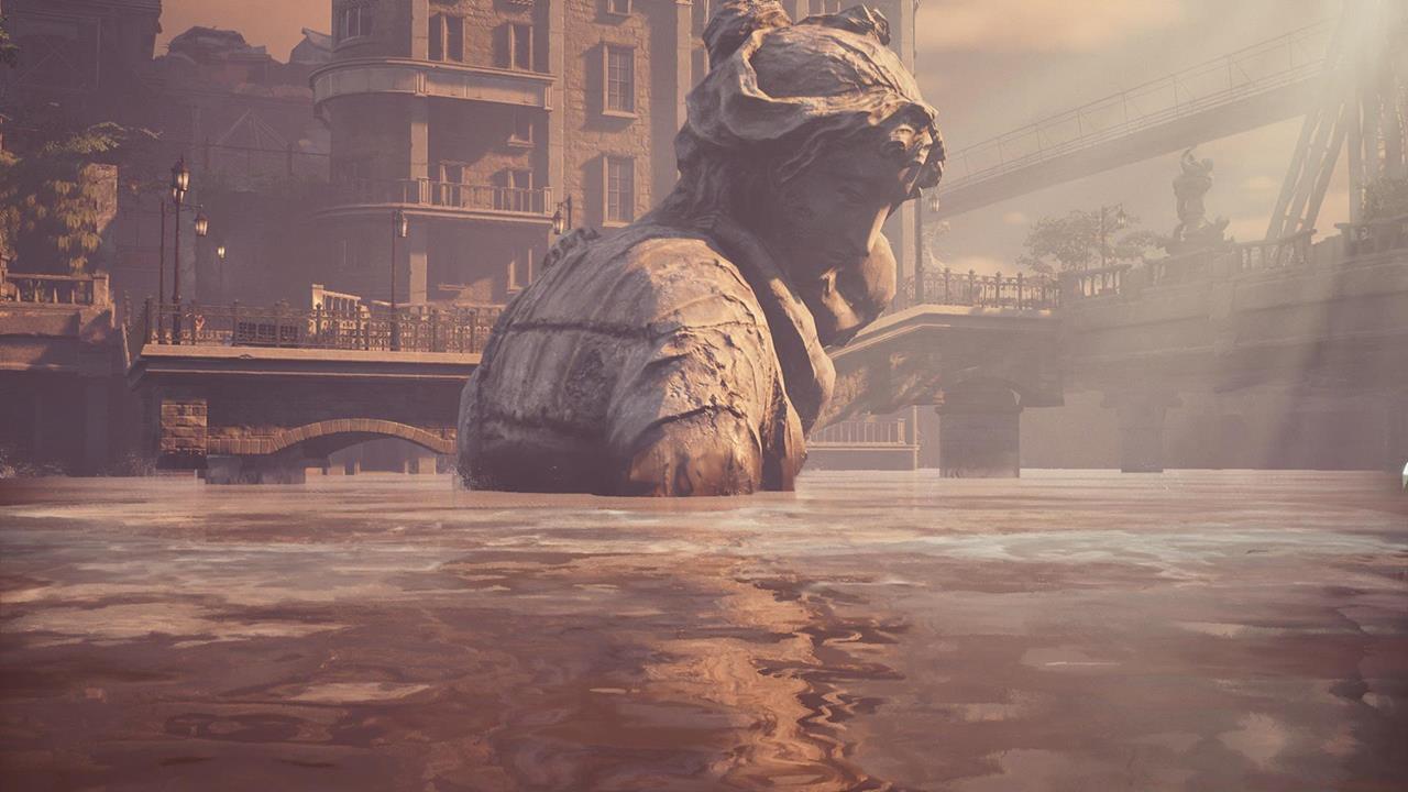 Activating the flood control terminal initiates the drainage sequence, causing the contaminated waters to recede throughout Eidos 7. This transformation unlocks previously submerged districts, revealing expansive new exploration opportunities beneath the plaza.