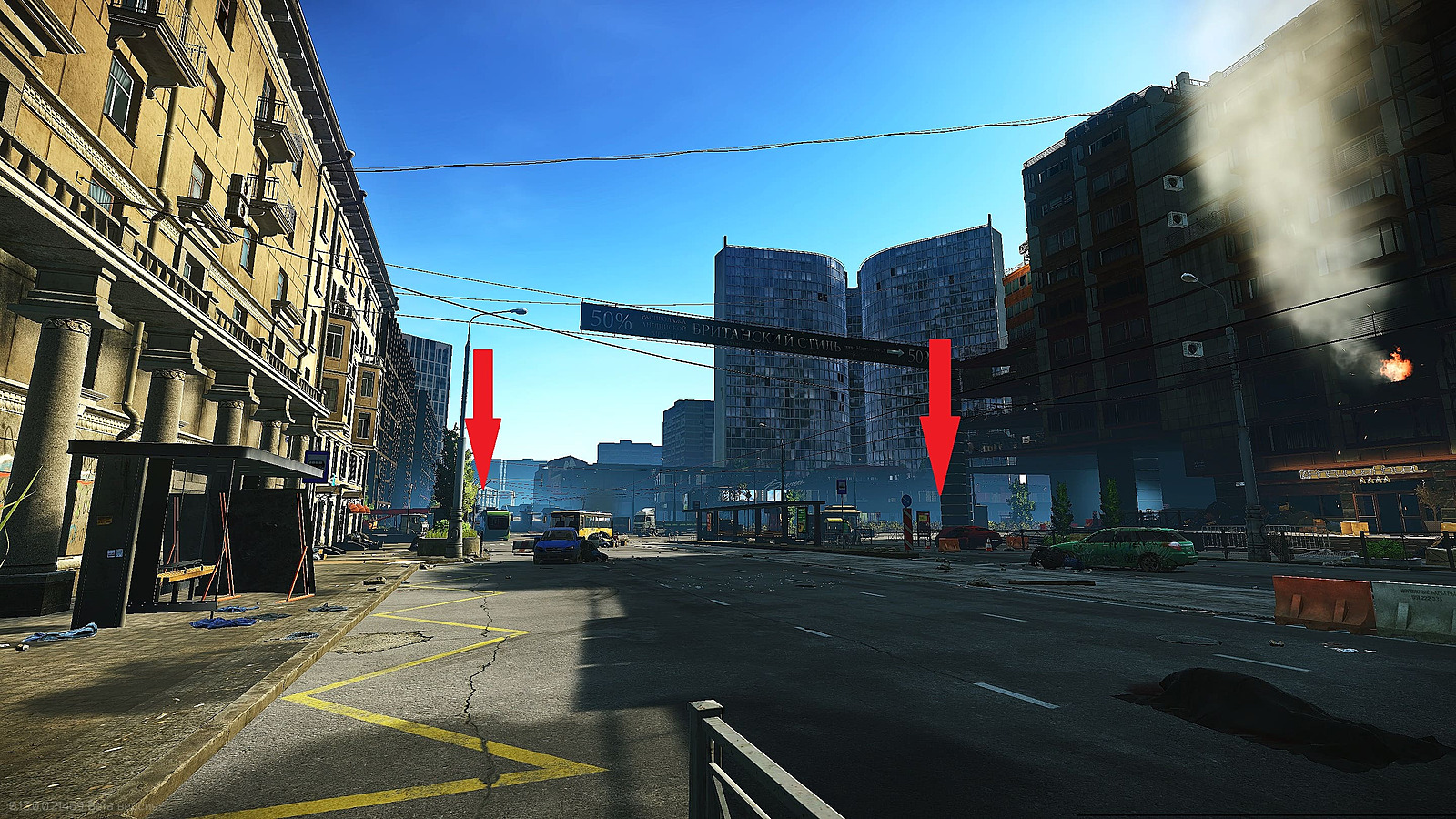 The urban terrain organizes into five primary combat zones: the cinema complex codenamed “Motherland,” the massive Concordia skyscraper with adjacent vehicle dealership, Pinewood Hotel sector, residential district, and combined business-industrial area. The entire map bisects along north-south tram lines that serve as critical navigation arteries. Pay close attention to Cyrillic street signage and building identification markers – these visual cues dramatically improve situational awareness and positional understanding during intense firefights.