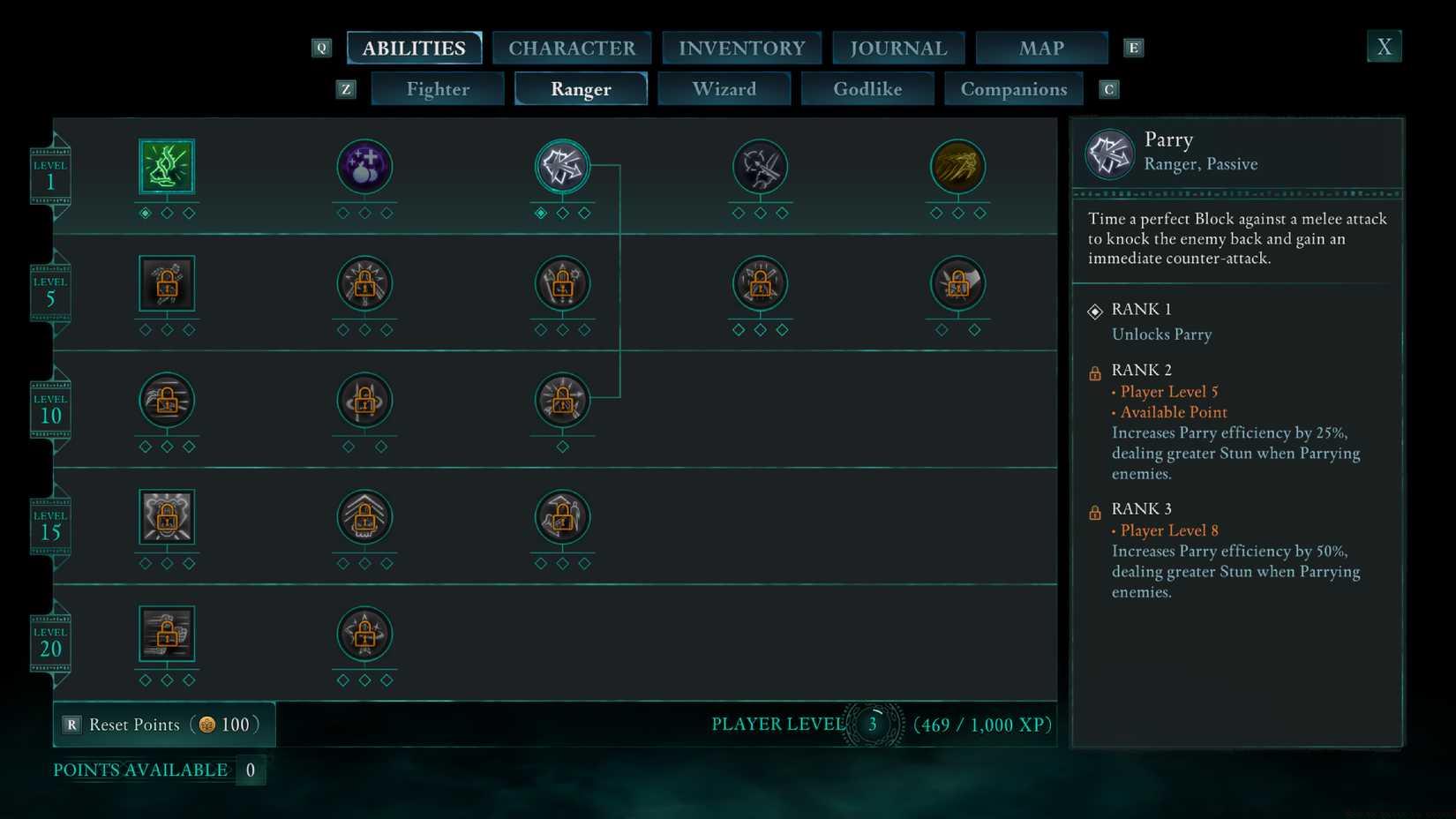 3TL;DR Parry unlocks in Ranger tree after placing first ability point in any class Three upgrade ranks significantly boost stun damage and combat efficiency Perfect timing requires ...