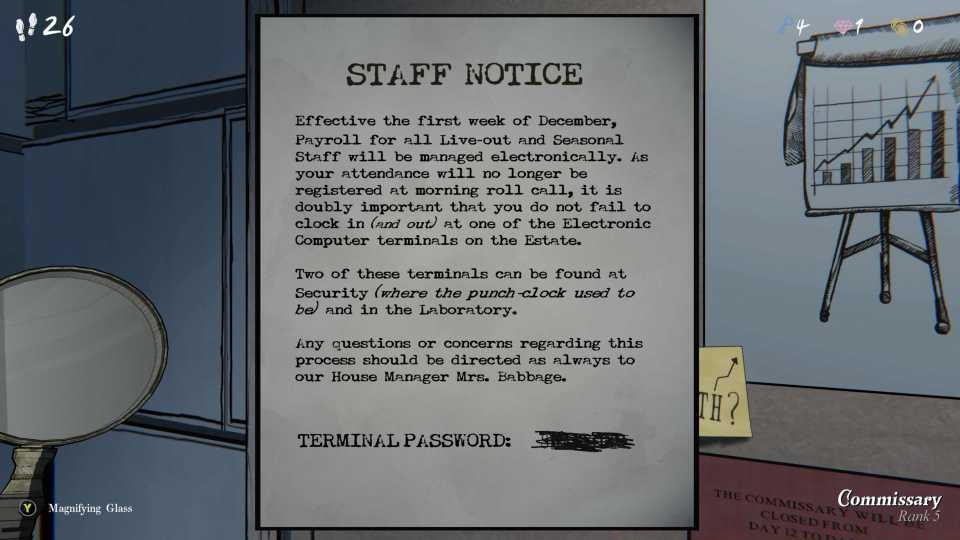 5TL;DR The universal terminal password ‘SWANSONG’ unlocks computer networks across all Blue Prince playthroughs Find the crossed-out password on Security’s bulleti...