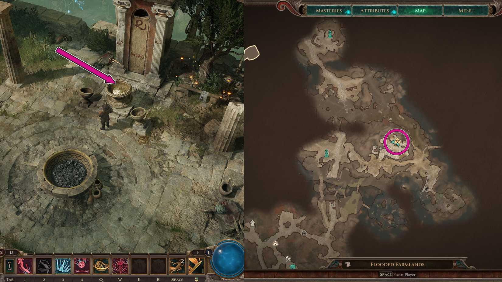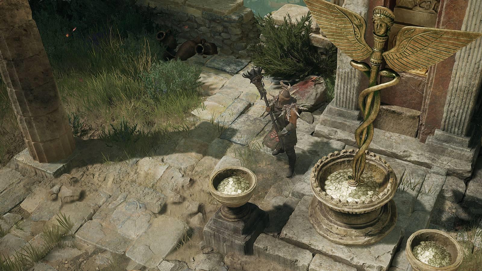 5TL;DR Find the Caduceus of Hermes in Flooded Farmlands east of Southern Farmlands waypoint Activate the shrine by placing the Caduceus in the bowl at Shrieking Ruins Read the scrol...