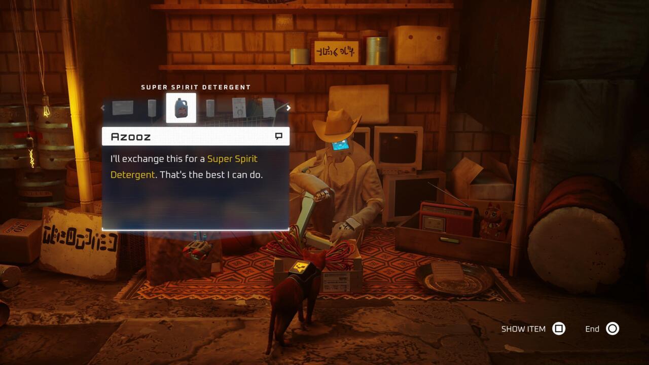 7TL;DR Complete a three-item trading chain: Detergent → Cable → Poncho → Fixed Tracker Distract Vapora by meowing during paint throws to access the laundry Trade items with specific...