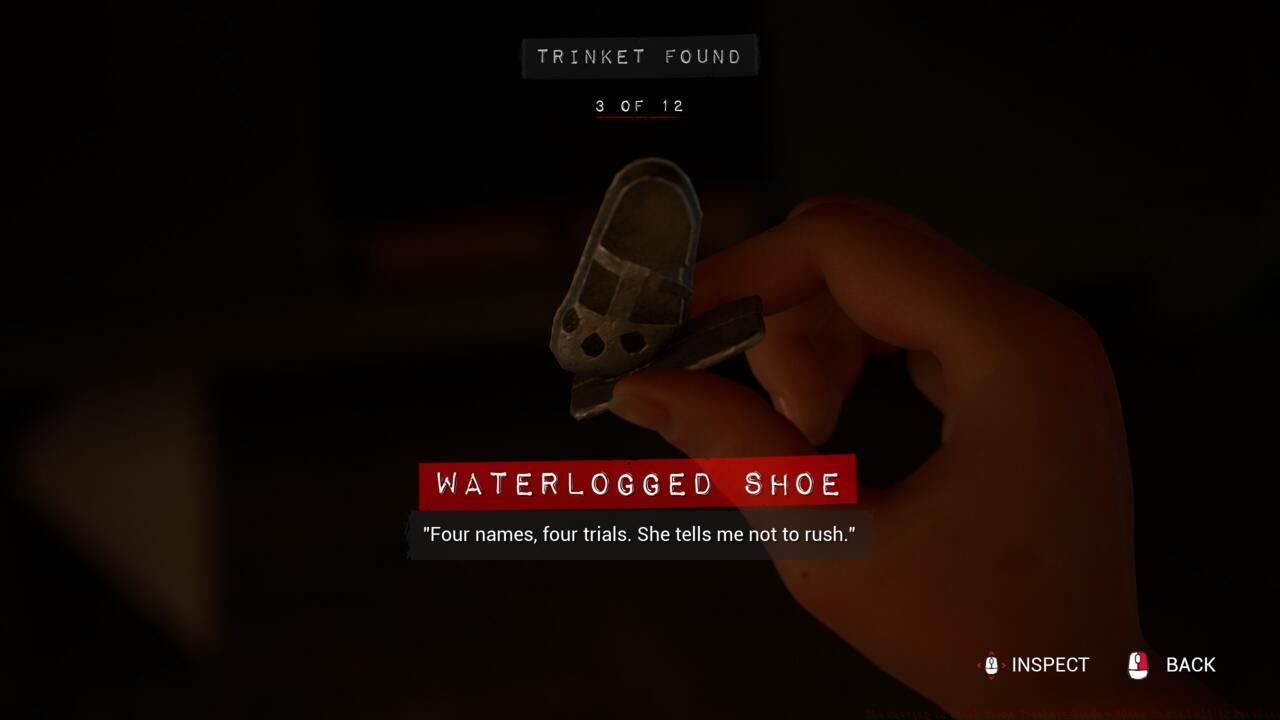 The Waterlogged Shoe represents one of the more straightforward mid-game collectibles. Located within the Drug Store environment during Chapter 3, this trinket typically requires minimal backtracking compared to later items. The straightforward placement makes it an ideal confidence builder before tackling more complex trinket hunts.
