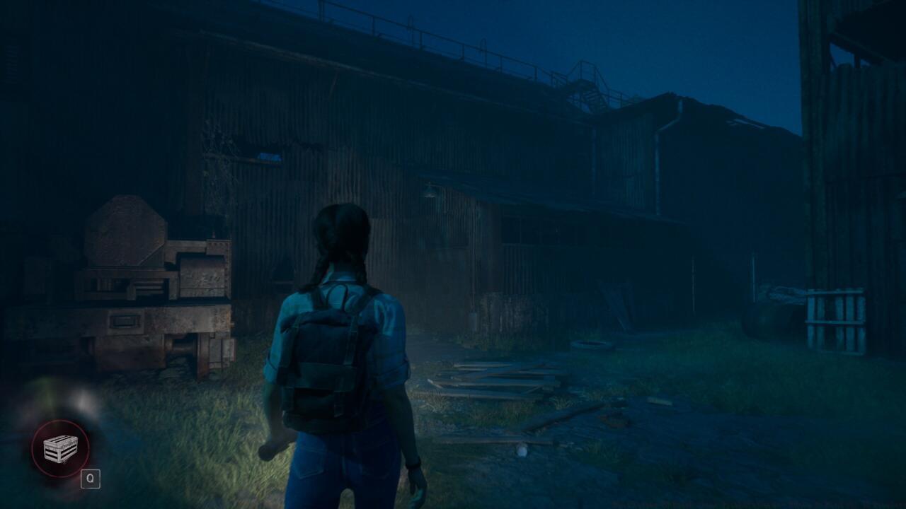 Once through the narrow passage, immediately turn left and circumvent the large tank structure. The trinket container rests visibly on the ground in this concealed area.