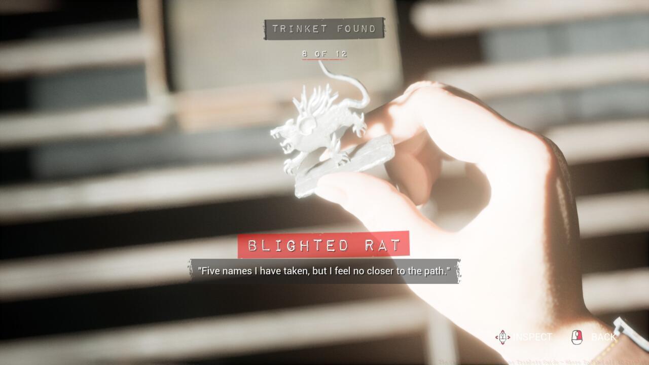 Critical to understand: your initial playthrough only yields 11 trinkets maximum due to the branching path decision in Chapter 5. Trinkets 5 and 6 are mutually exclusive based on your route selection—choosing one path permanently locks you out of the alternative trinket. Additionally, Trinket 4 presents collection challenges as it’s found out of sequence from the others. Access requires a key obtained earlier in the chapter, explaining its early numbering despite later acquisition.