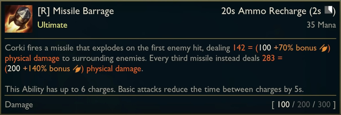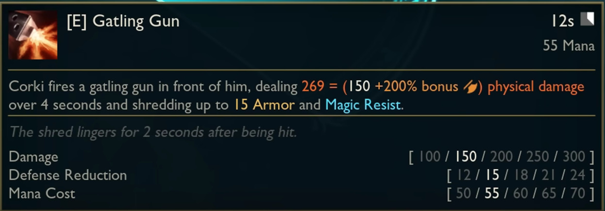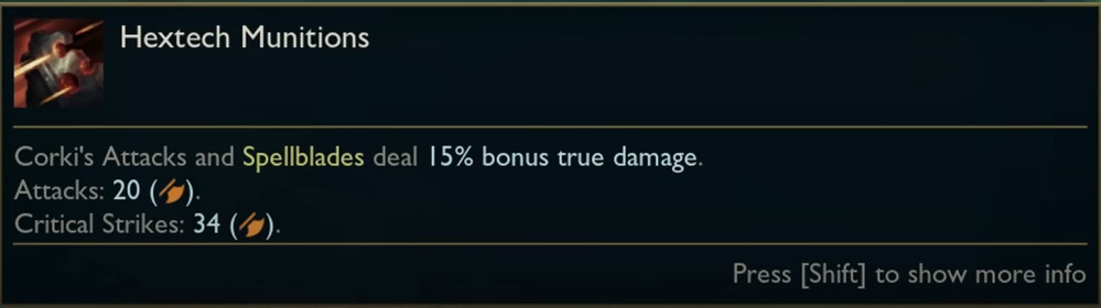 - Corki loses his passive and package but gains 15% bonus true damage on auto-attacks