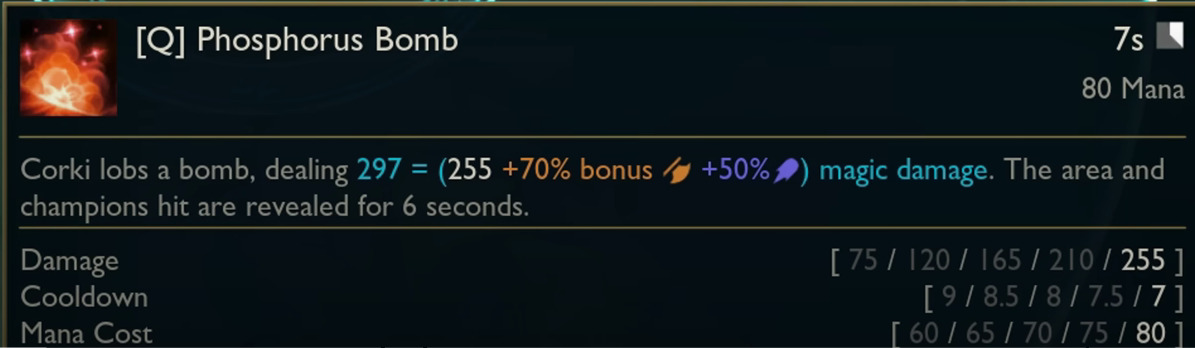 Corki’s iconic passive ability and the signature Package mechanic have been completely removed from his kit. In their place, the champion now receives a substantial 15% bonus true damage applied directly to his basic attacks, creating consistent hybrid damage output throughout all game phases. His Phosphorus Bomb (Q) ability now travels significantly faster, improving reliability for poke and wave clear scenarios.