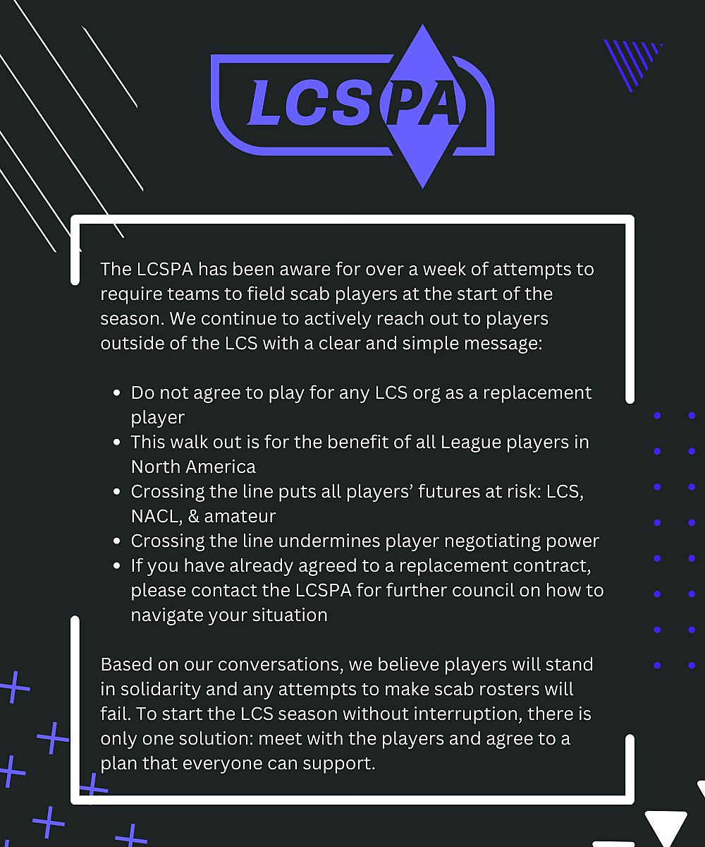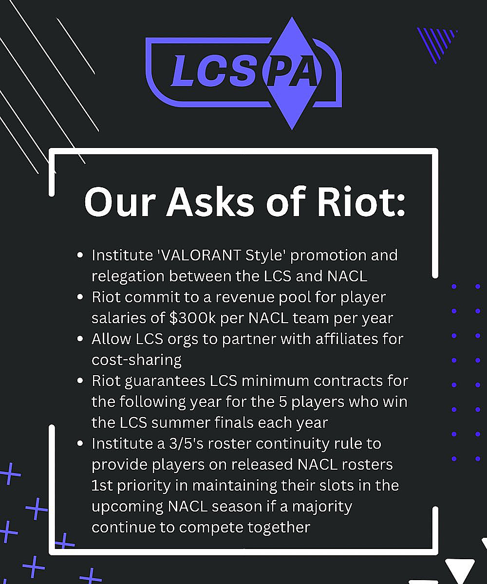 - LCSPA organized first major player walkout in esports history against Riot Games’ NACL decision