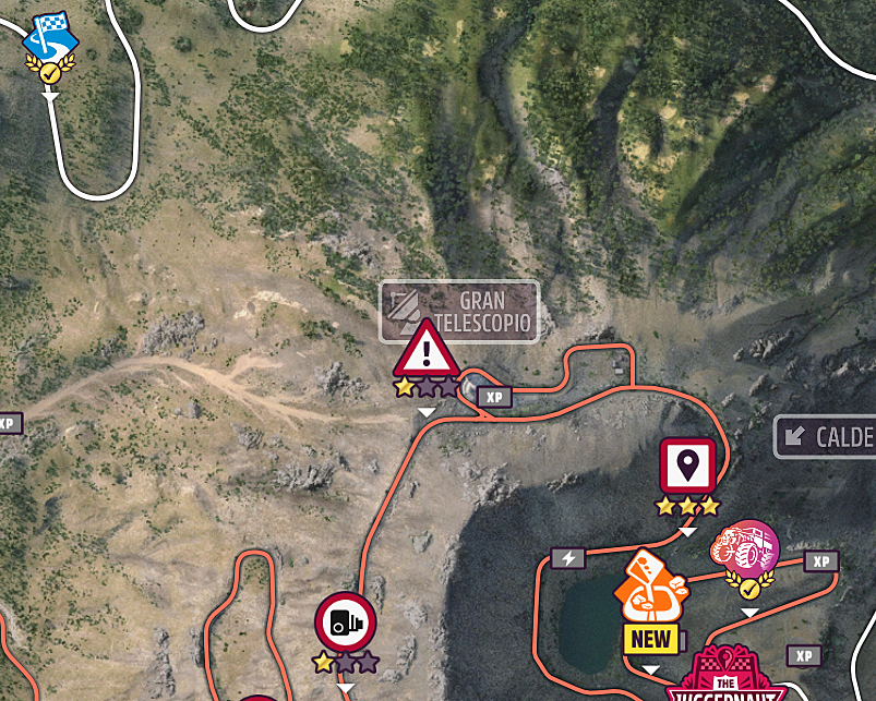 With your Hypercar prepared, navigation toward the northwestern volcanic region commences. The Gran Telescopio facility occupies elevated terrain on the volcano’s slopes, requiring careful route selection through varied elevation changes. Setting a custom waypoint on your map interface provides continuous directional guidance, minimizing navigational errors during ascent.