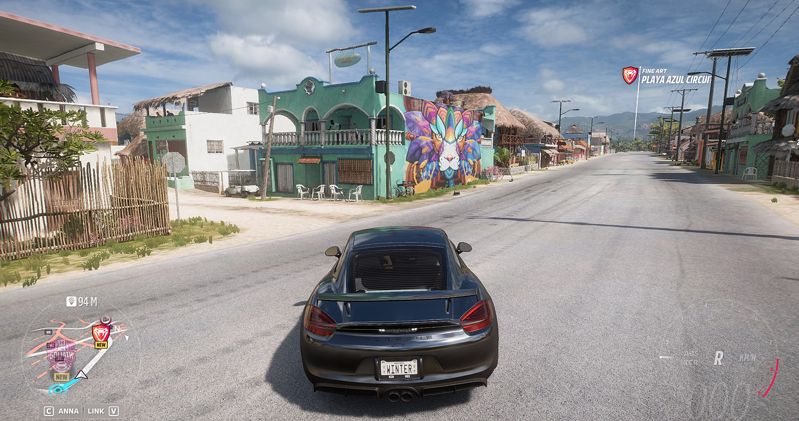 Acquiring the designated Porsche presents minimal difficulty – simply visit the Autoshow and exchange 85,000 credits for this mid-engine sports car. However, pinpointing the mural’s exact position demands careful observation, as Playa Azul encompasses an extensive urban area with numerous potential locations.
