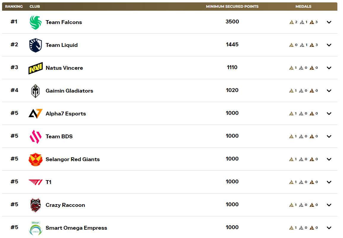 Update, August 5: Team Falcons has established a commanding position atop the standings with an impressive 3,500 total points. Their dominant performance stems from securing two tournament championships complemented by one silver medal achievement, demonstrating consistent excellence across multiple competitive landscapes.